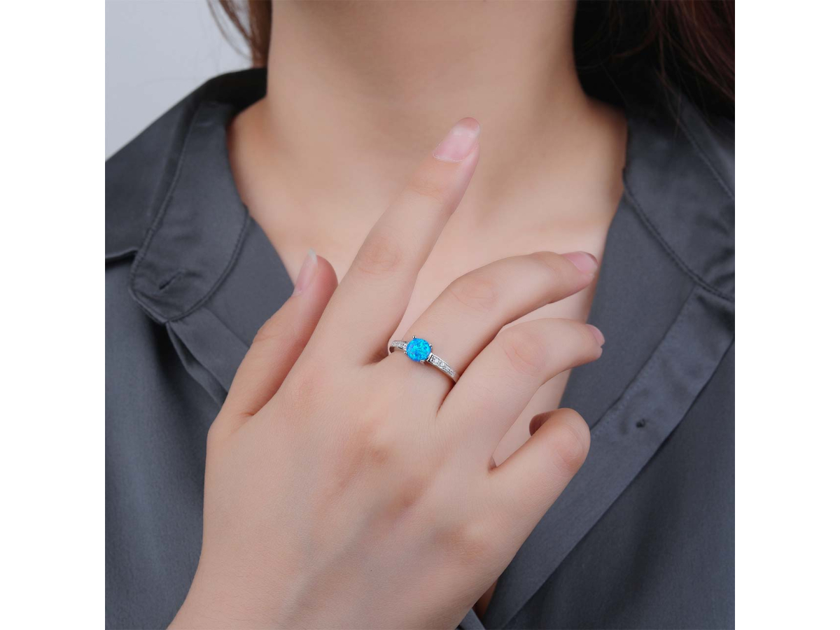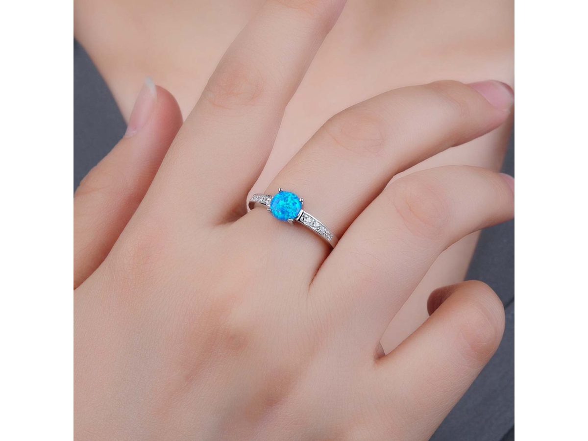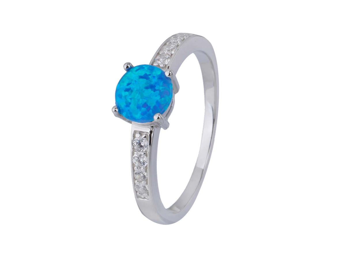 Stříbrný prsten SOLITÉR modrý OPÁL Ag 925/1000