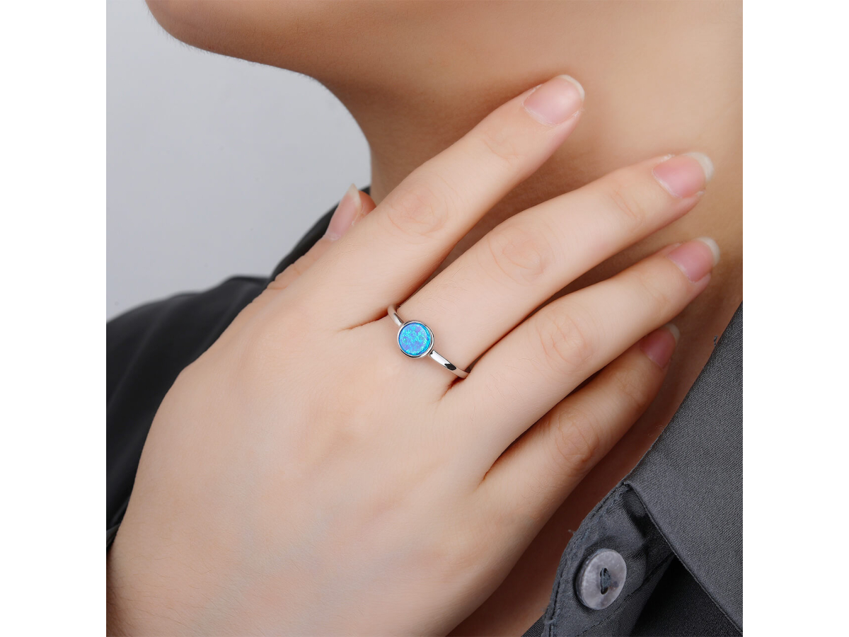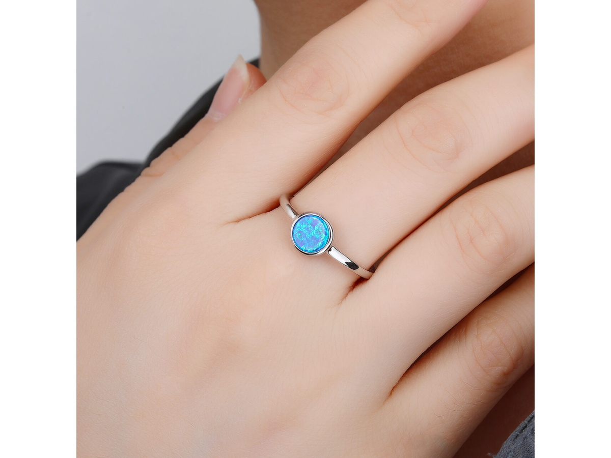 Stříbrný prsten SOLITÉR modrý OPÁL Ag 925/1000