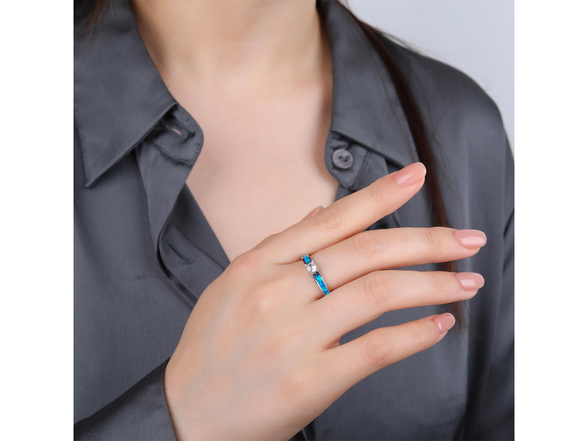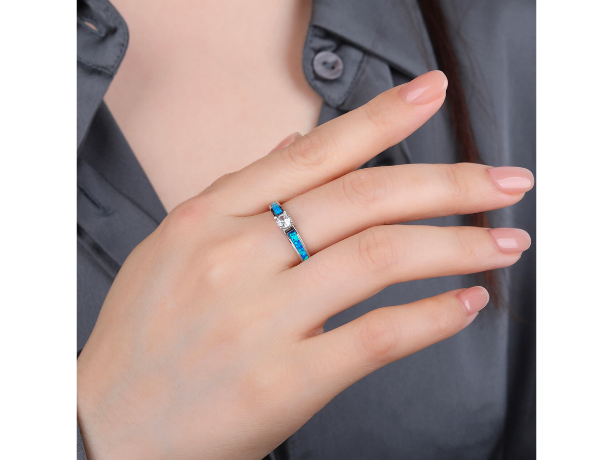 Stříbrný prsten SOLITÉR modrý OPÁL Ag 925/1000