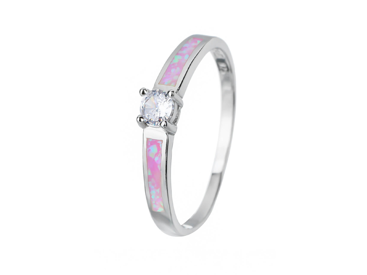 Stříbrný prsten SOLITÉR růžový OPÁL Ag 925/1000