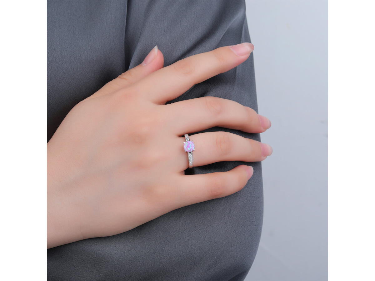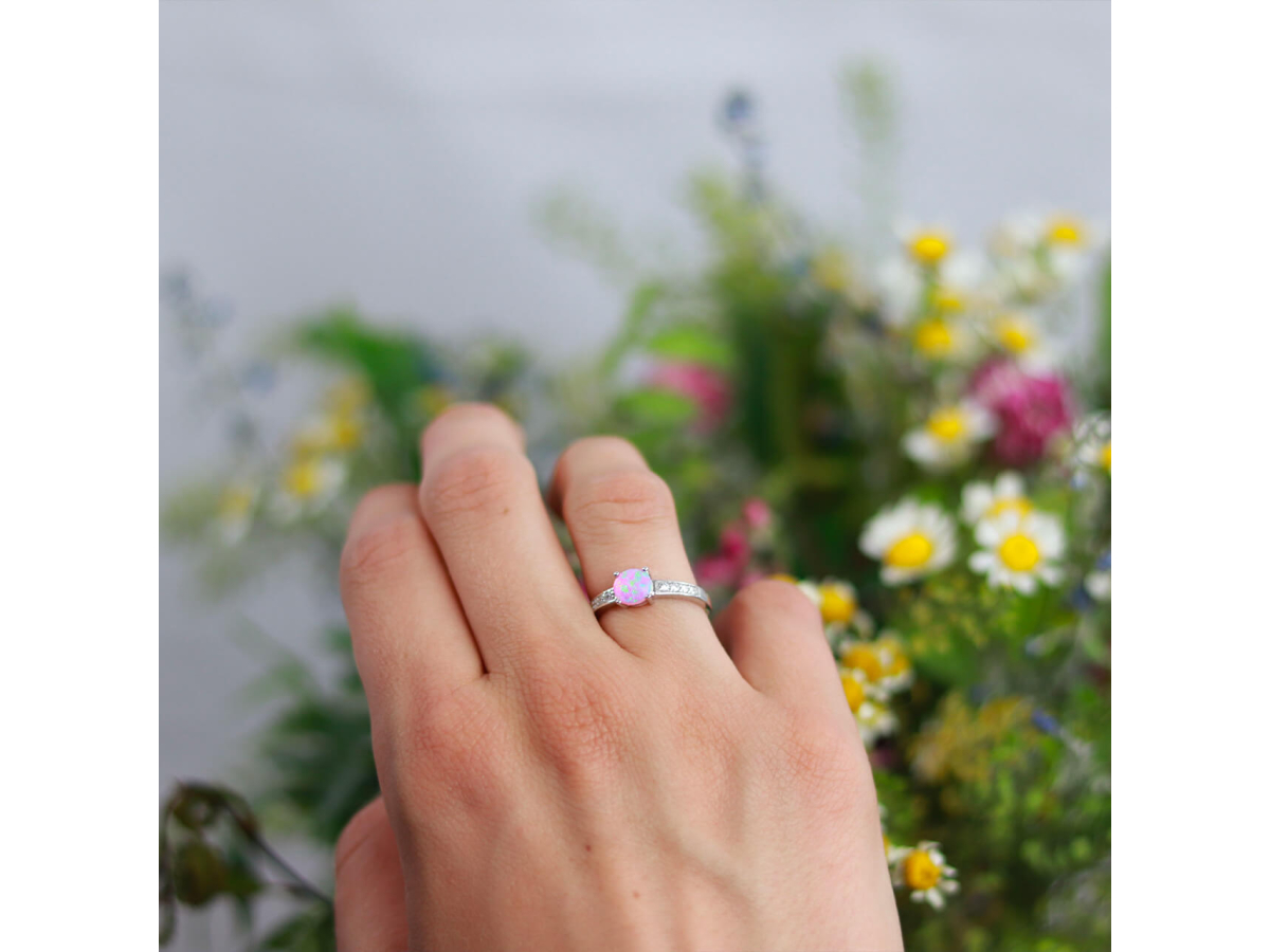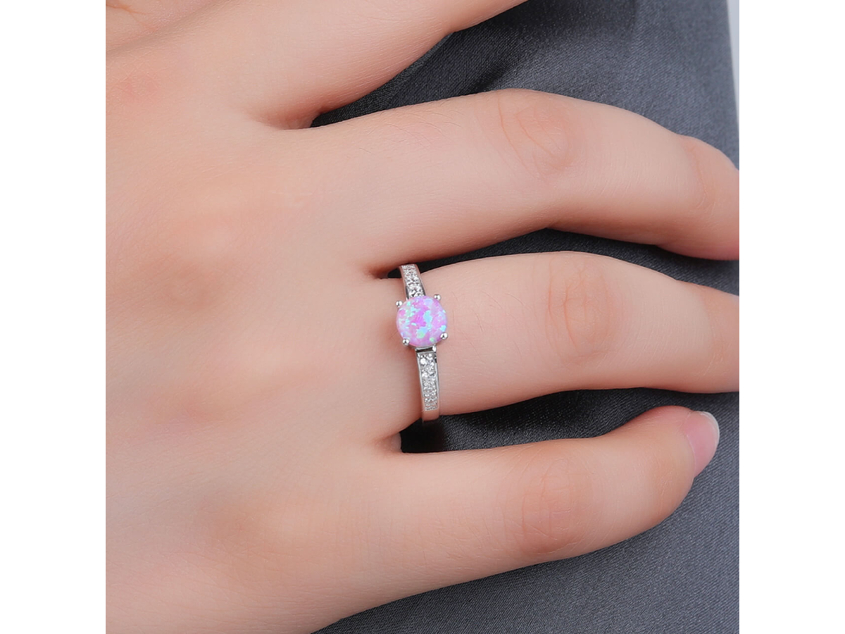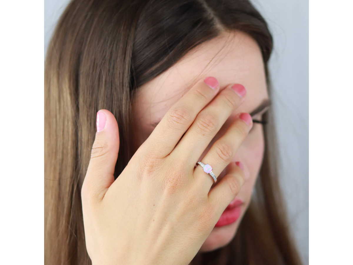 Stříbrný prsten SOLITÉR růžový OPÁL Ag 925/1000