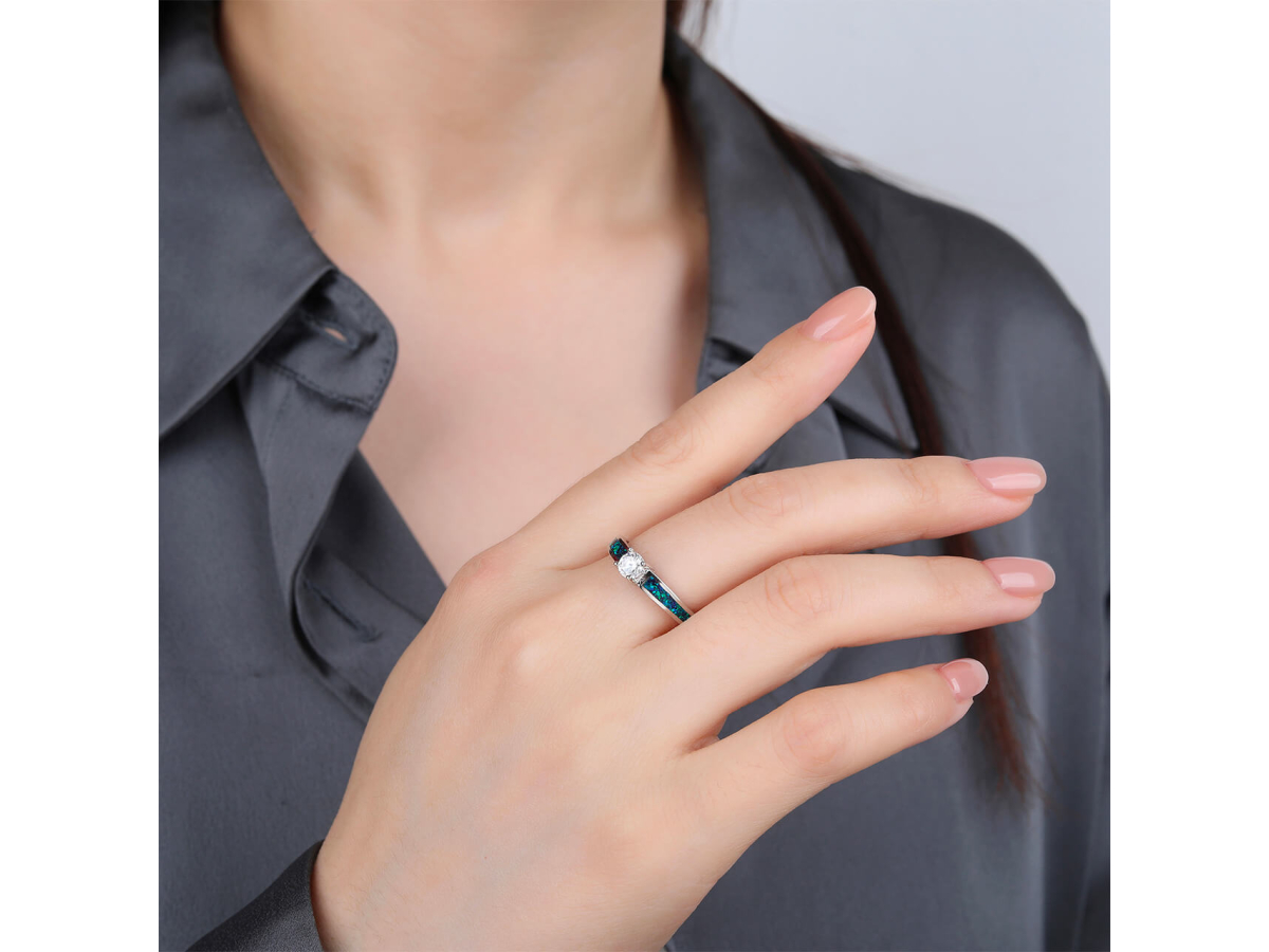 Stříbrný prsten SOLITÉR zelený OPÁL Ag 925/1000