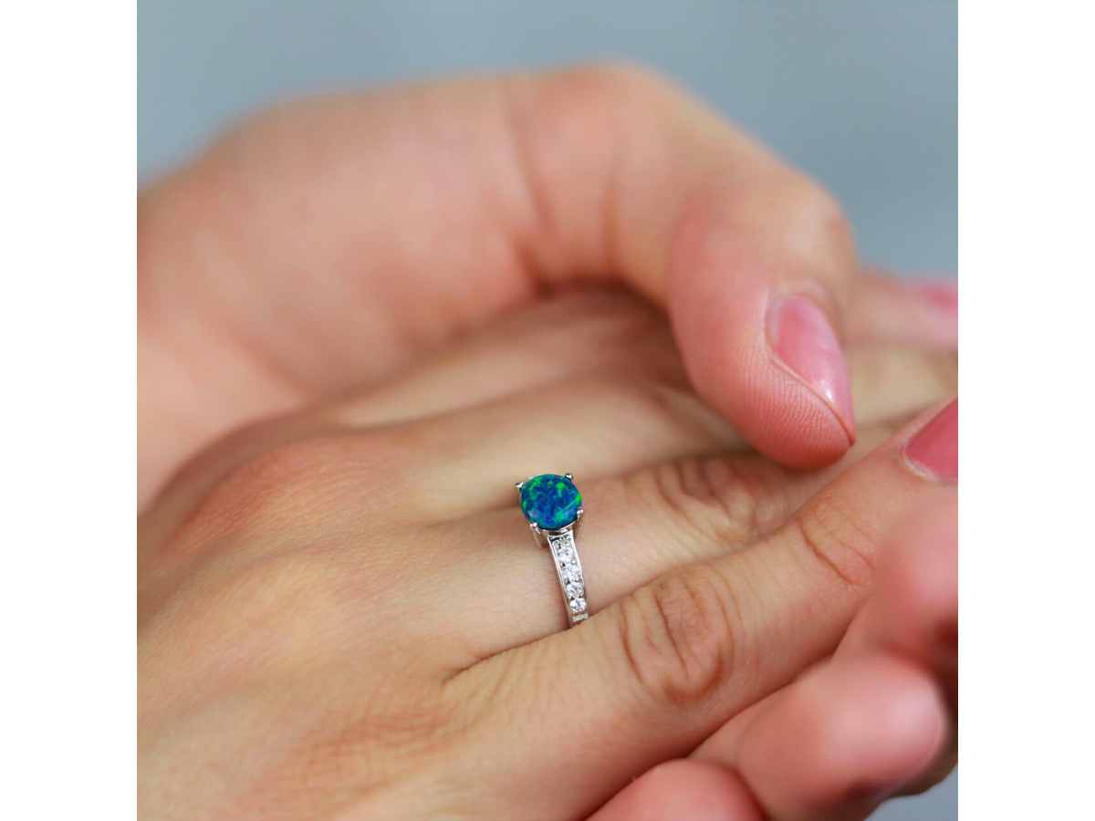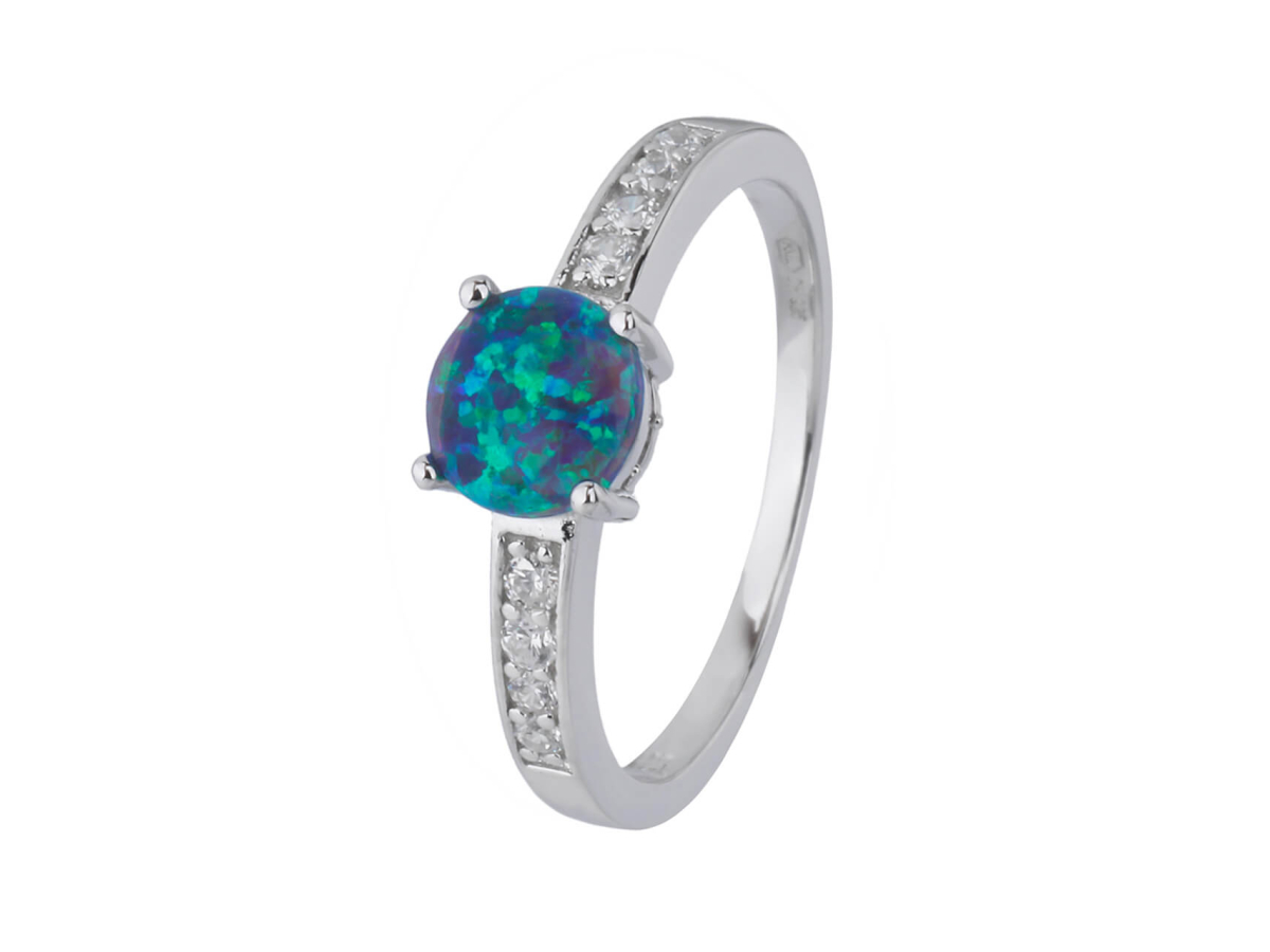 Stříbrný prsten SOLITÉR zelený OPÁL Ag 925/1000