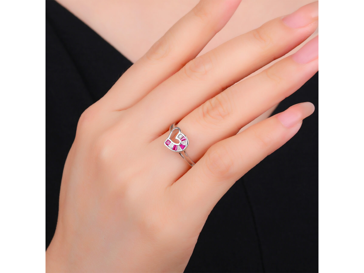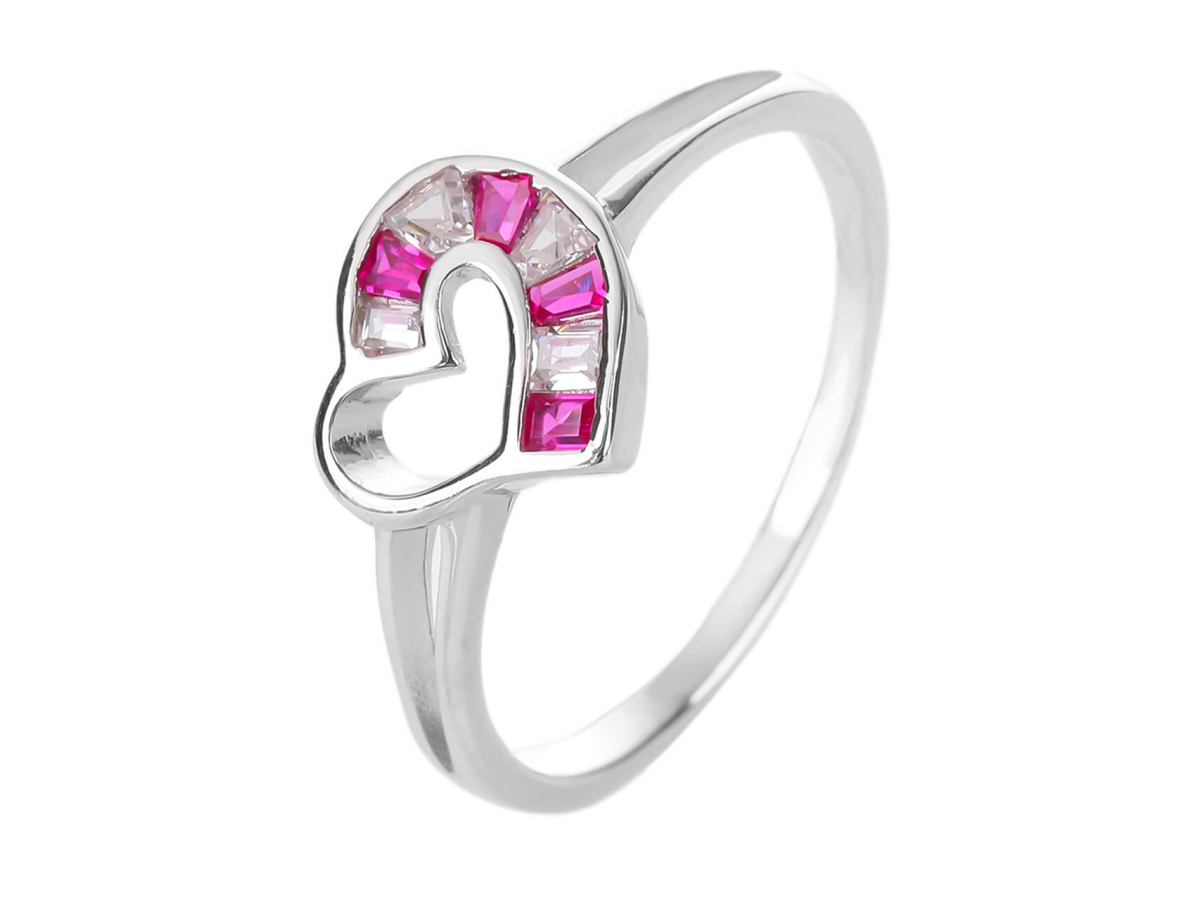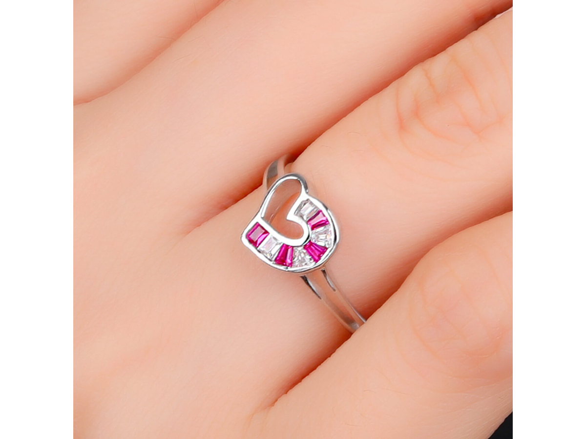 Stříbrný prsten SRDCE červené Ag 925/1000