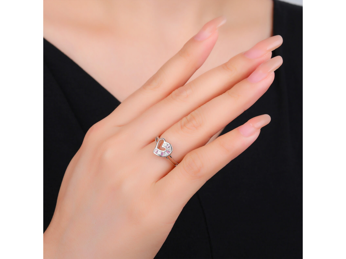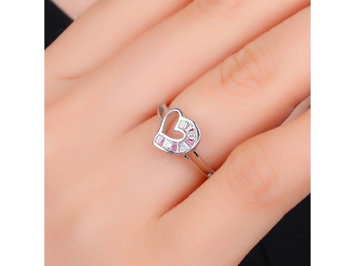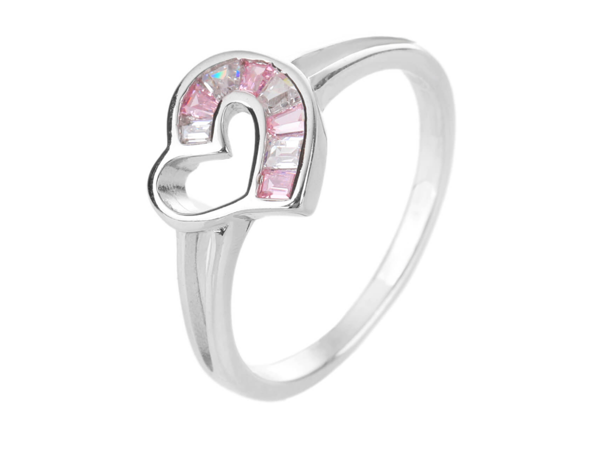 Stříbrný prsten SRDCE růžové Ag 925/1000