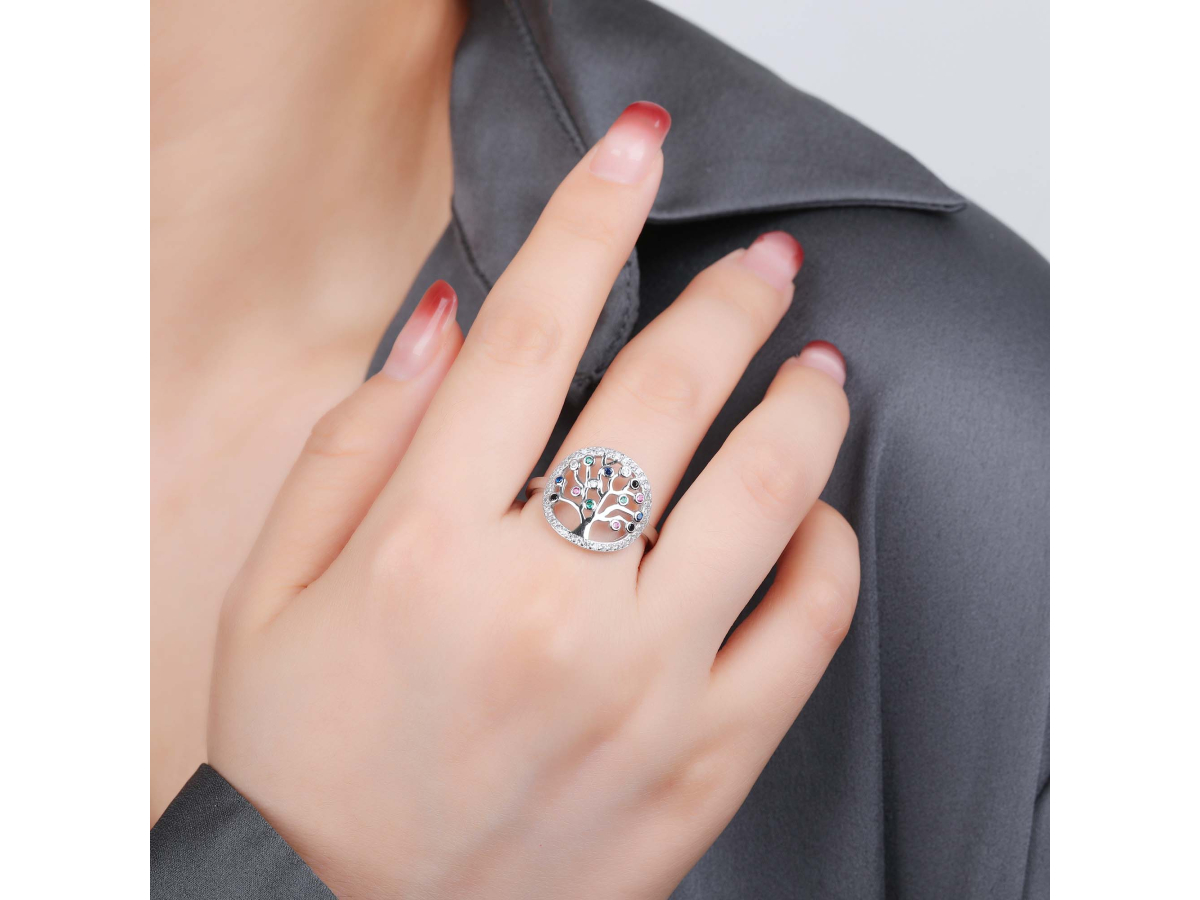 Stříbrný prsten STROM ŽIVOTA barevný Ag 925/1000