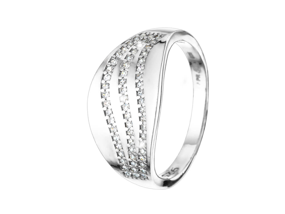 Stříbrný prsten s nádherně zářícími čirými zirkony. Vznešený šperk, který dá ten pravý lesk půvabu a ženství. Perfektní kousek pro každou ženu, která miluje šperky.