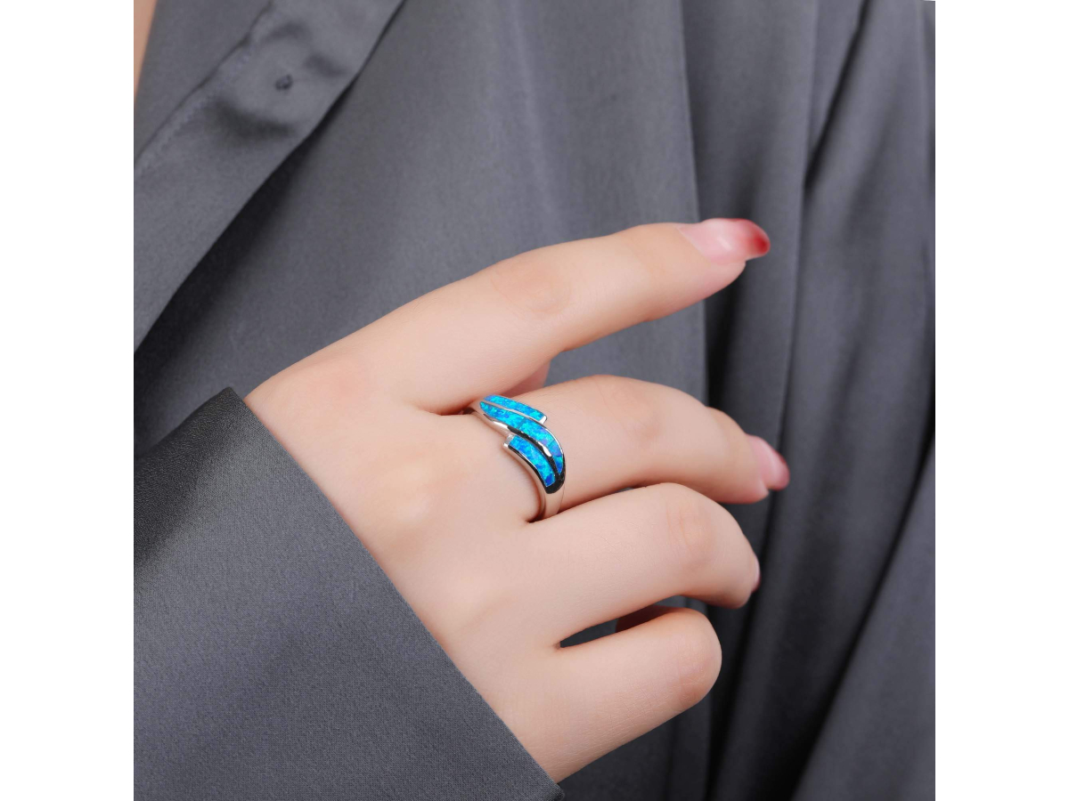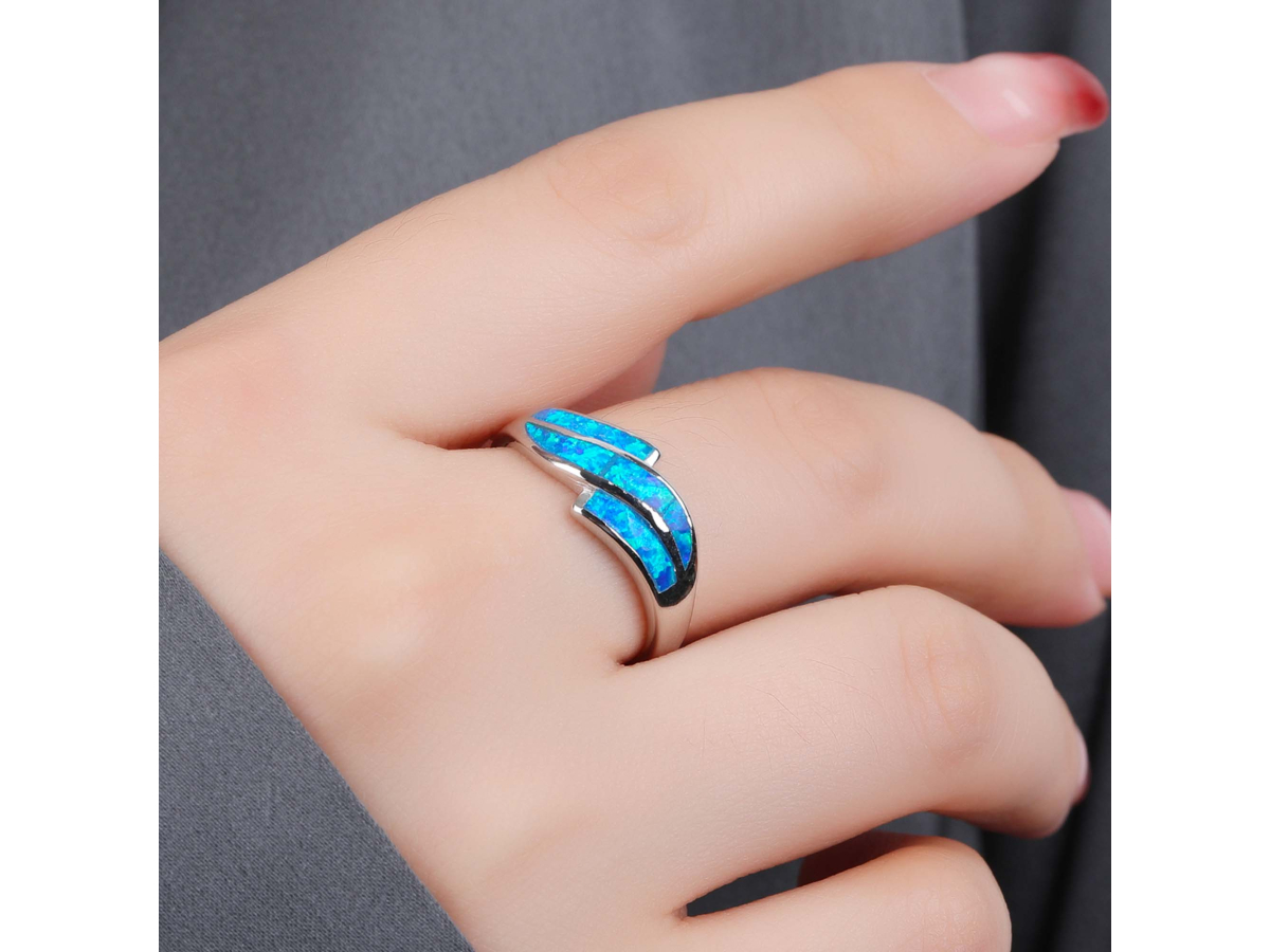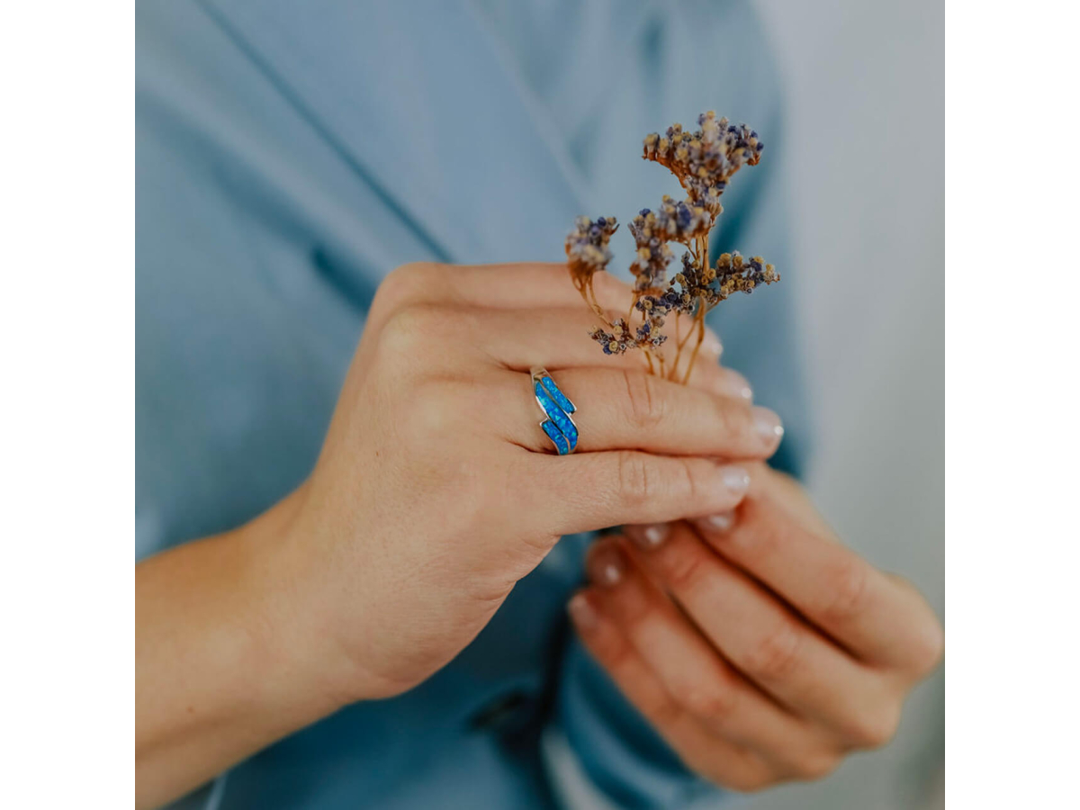 Stříbrný prsten VLNKY modrý OPÁL Ag 925/1000