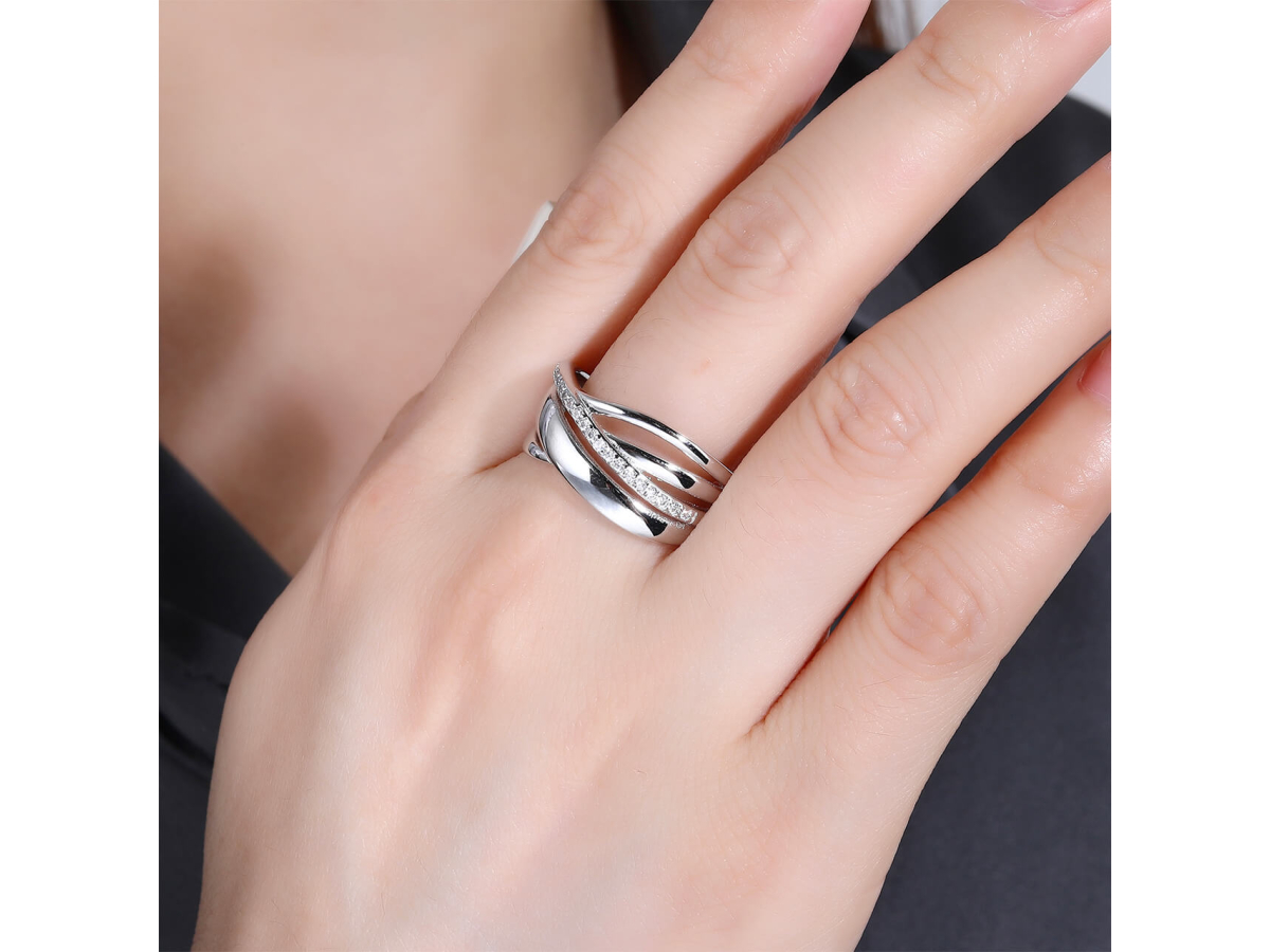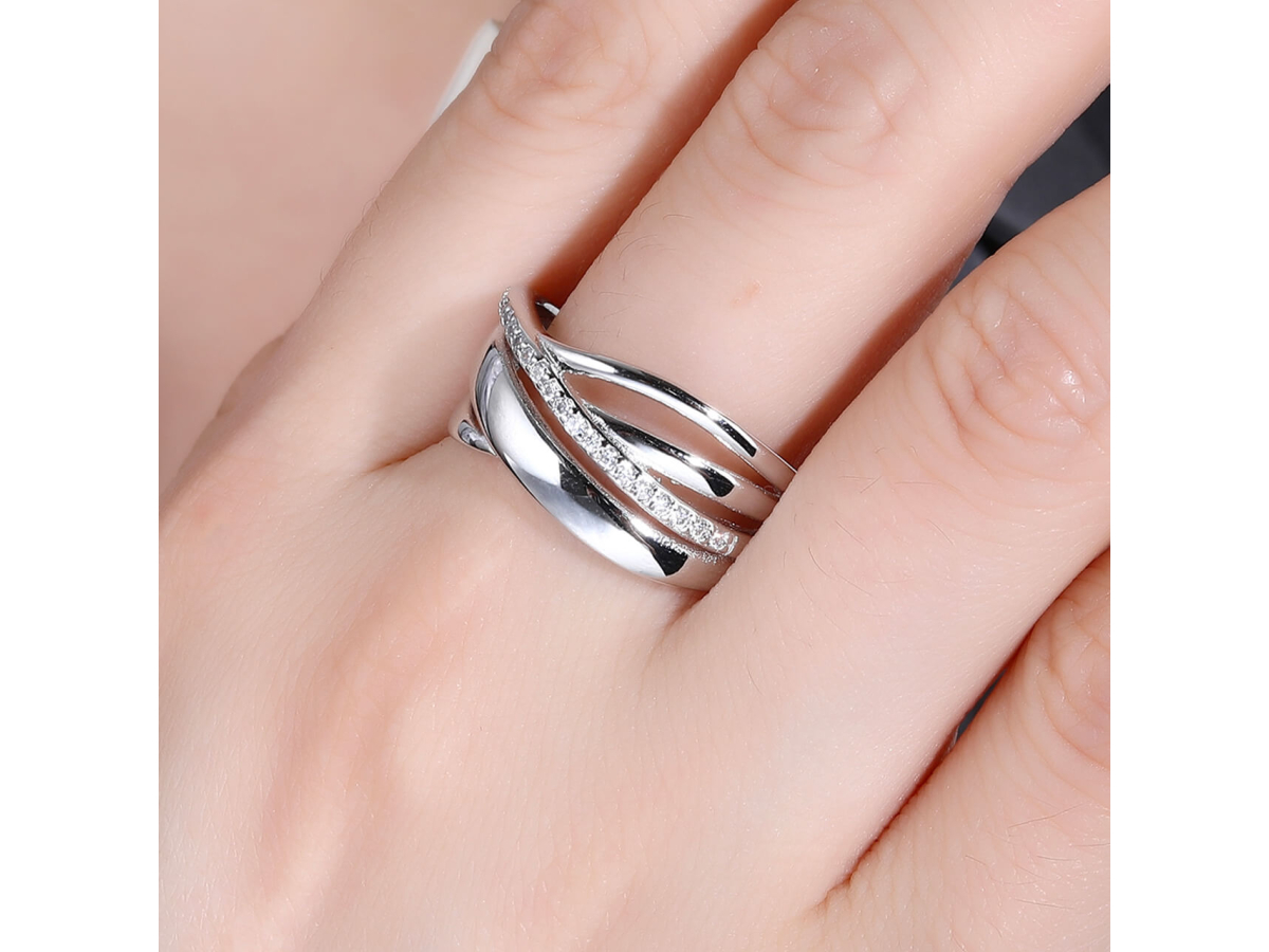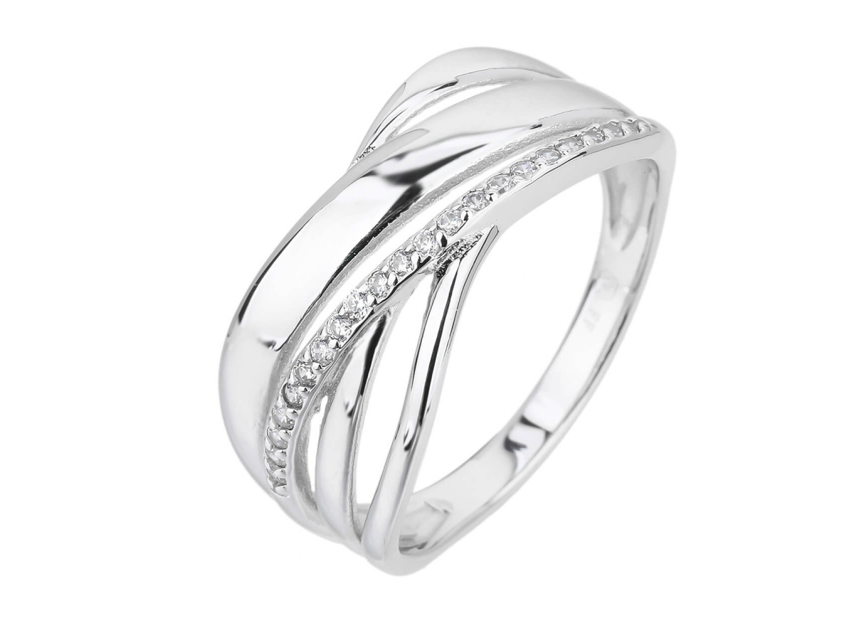 Stříbrný prsten VLNKY se zirkony Ag 925/1000