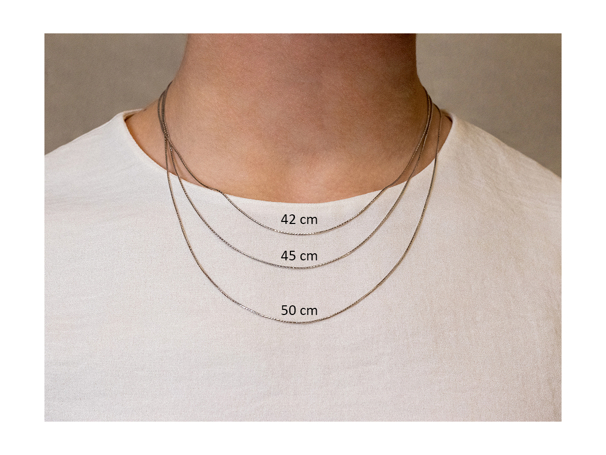 - Nejčastější dámské délky jsou 42 a 45 cm, avšak záleží, jak hluboko v dekoltu má žena řetízek ráda.