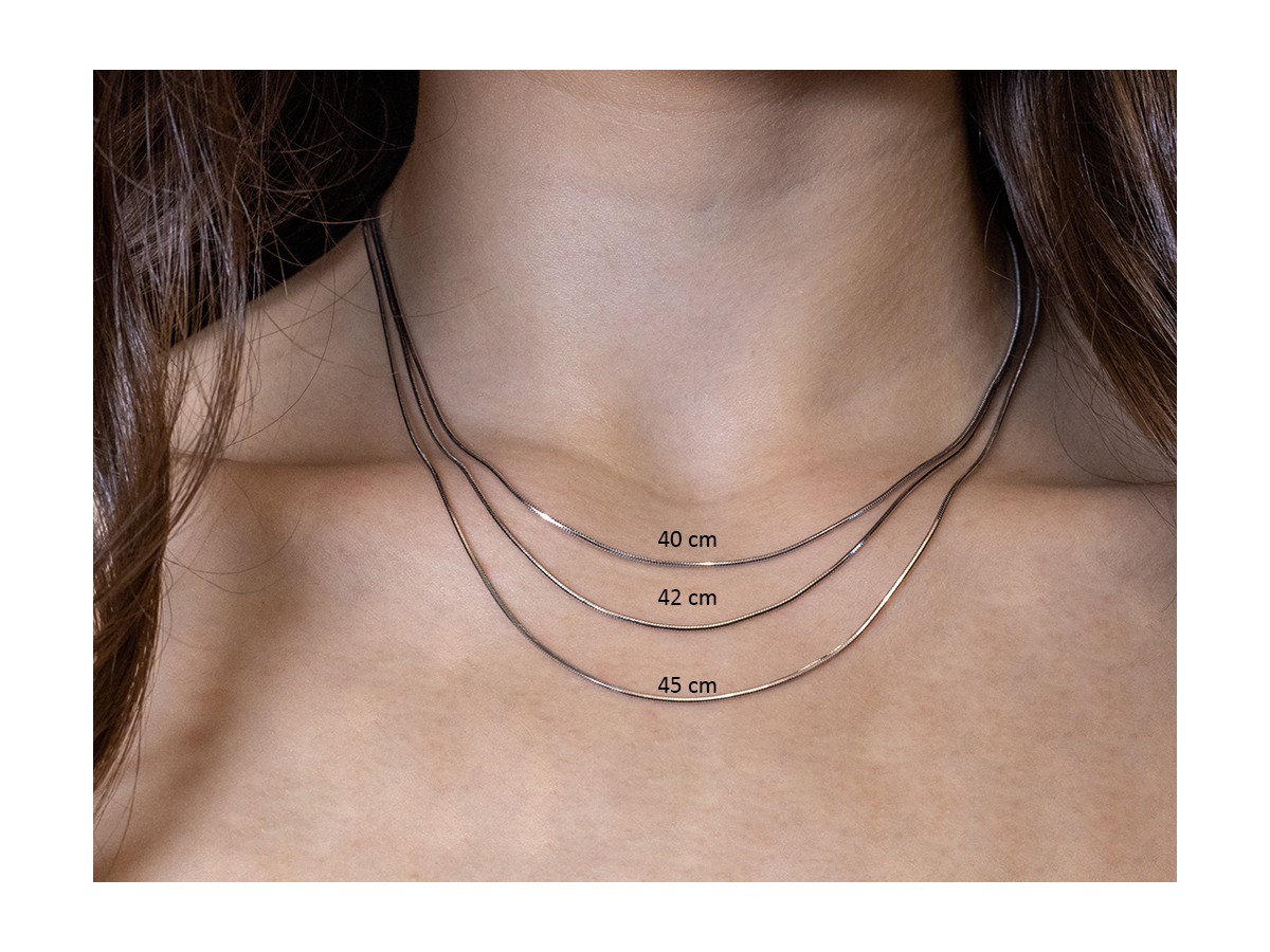 - Nejčastější dámské délky jsou 42 a 45 cm, avšak záleží, jak hluboko v dekoltu má žena řetízek ráda.